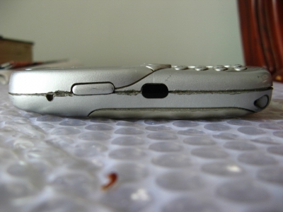 3、手机成色保守估计6/7成新,外壳有正常磨损以及磕碰痕迹,中缝有拆机痕迹;卡扣有一处有裂纹,不影响合盖;电池盖卡扣断裂,现已更换一金色后盖。