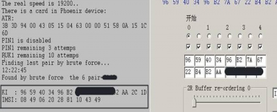 I、如上图,程序自动填上了最后一组KI(第7对),并且给出了KI、IMSI数值的列表,解码成功了!!!!!!!!将得到的KI、IMSI复制下来并妥善保存!!