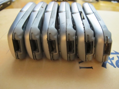 按键左确认,拔出键失灵,屏幕灯较暗。 4号机:缺红外窗口,版本16,按键好用,功能一切正常。 5号机:纯进水机器,版本9,按键好用,功能正常,电参不准 6号机:外壳完好,版本10,按键正常,屏幕灯中间两个较暗,功能正常。 上述6个机器均功能完好,除个别按键不好用和电参不准确以外。 5个原装卡托,4个原装32兆卡,5块电池,电池都太老待机时间忽略不写了,就当白送电池。 打包160包顺丰,砍价勿扰,谢了众位。